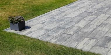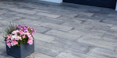 Velkoplošná dlaždice s elegantním podélným tvarem a hladkým povrchem CSB – LEGANTO v šedo-černých zemitých tónech COLORMIX se k modernímu bungalovu velice hodí.