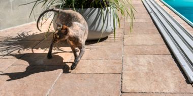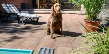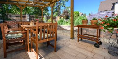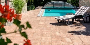 Příjemné prostředí zvoucí ke grilování a ochlazení v bazénu. Můžete zde vidět dlažbu CORTILA PLAYA a oblíbený NATURBLOK CAOBA.